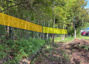 ②手前(側溝沿い)にH=2000のフェンスを新設する。