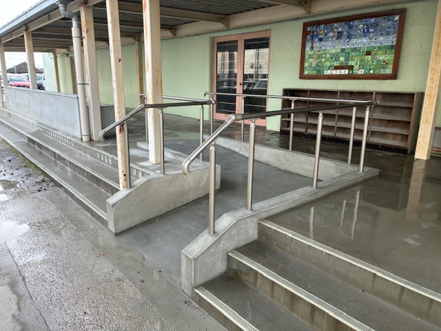 画像は体育館前階段に設置したスロープです。